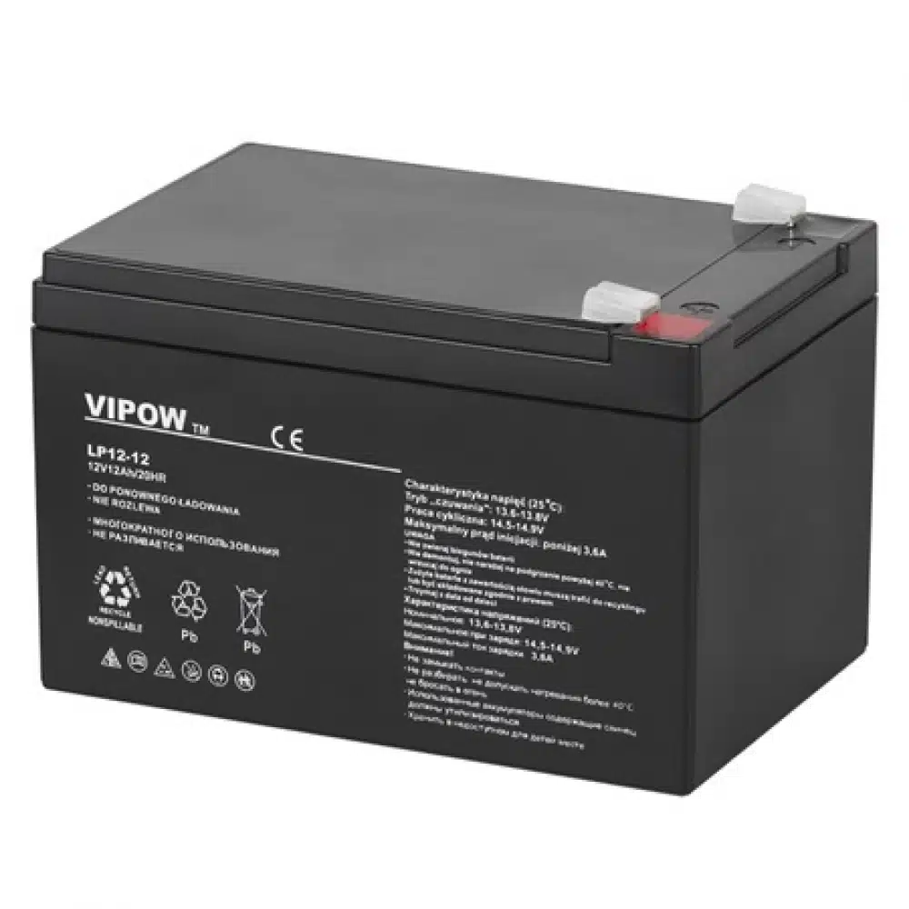 Acumulator plumb 12V 12AH Vipow, VRLA AGM, fără întreținere. Ideal pentru UPS, sisteme de alarmă, aplicații medicale și industriale. Fiabilitate și durată lungă de viață.