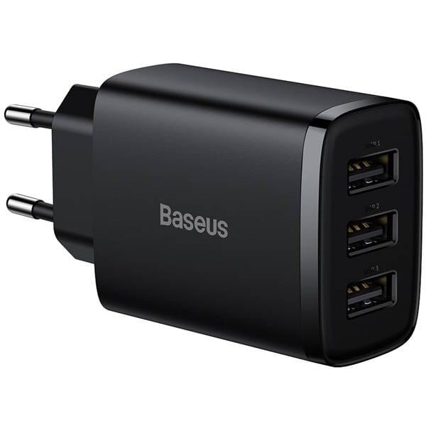 Încărcător de rețea Baseus 3x USB Type-A, 17W, Negru, Quick Charger – Încărcare rapidă pentru telefoane, tablete și alte dispozitive. 3 porturi USB, design compact, tehnologie Quick Charge. Ideal pentru acasă, birou și călătorii.
