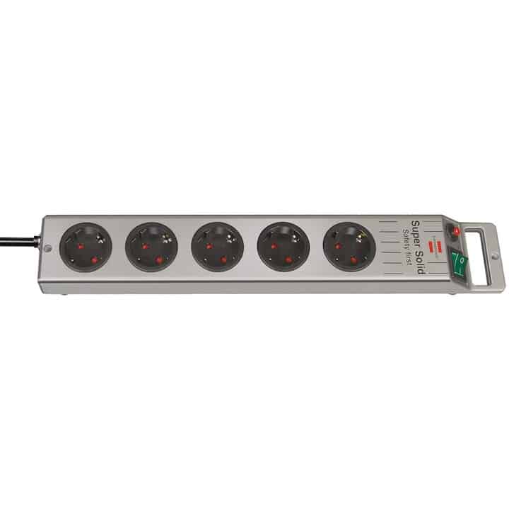 Prelungitor cu protectie 5 prize 2.5m Brennenstuhl Super‑Solid, echipat cu 5 prize Schuko și cablu de 2,5 metri, protejează eficient echipamentele sensibile de supratensiuni, oferind o filtrare maximă de 13 500 A. Are un design robust din policarbonat rezistent, comutator iluminat (bipolar) și indicator LED pentru stare activă. Prizele sunt dispuse la 45°, oferă spațiu generos pentru conectori mari și dispun de protecție pentru copii. Produsul este potrivit pentru locuințe, birouri sau ateliere, oferind fiabilitate și siguranță superioare.