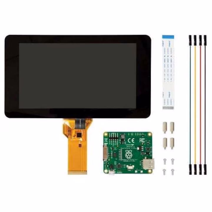 Include: Display de 7 inch, placă adaptor, cablu ribbon, 4 elemente de montare și 4 fire pentru conexiuni